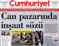 Gazete, "Can pazarında inşaat sözü" ifadelerini kullandığı haberinde, adeta depremzede vatandaşların sokakta kalmalarını ister gibi Cumhurbaşkanı Erdoğan'ın sözünü hedef aldı.