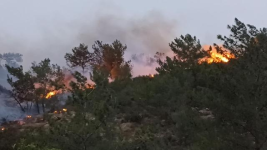 Arazinin sarp ve engebeli olması nedeniyle, ekiplerin yangına müdahalesi güçlükle sürüyor.